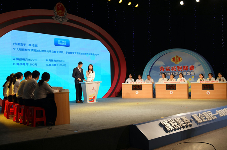 4月18日下午,由國家稅務總局梅州稅務局、梅江區(qū)稅務局聯(lián)合主辦,梅州市廣播電視臺承辦的2019年梅州市“減稅降費 惠企惠民”稅收知識競賽決賽在市電視臺演播中心正式舉行。